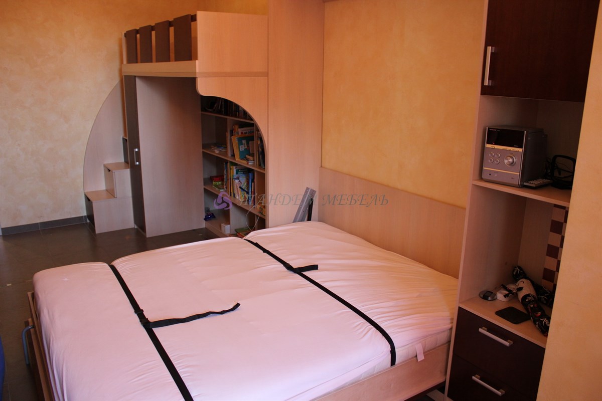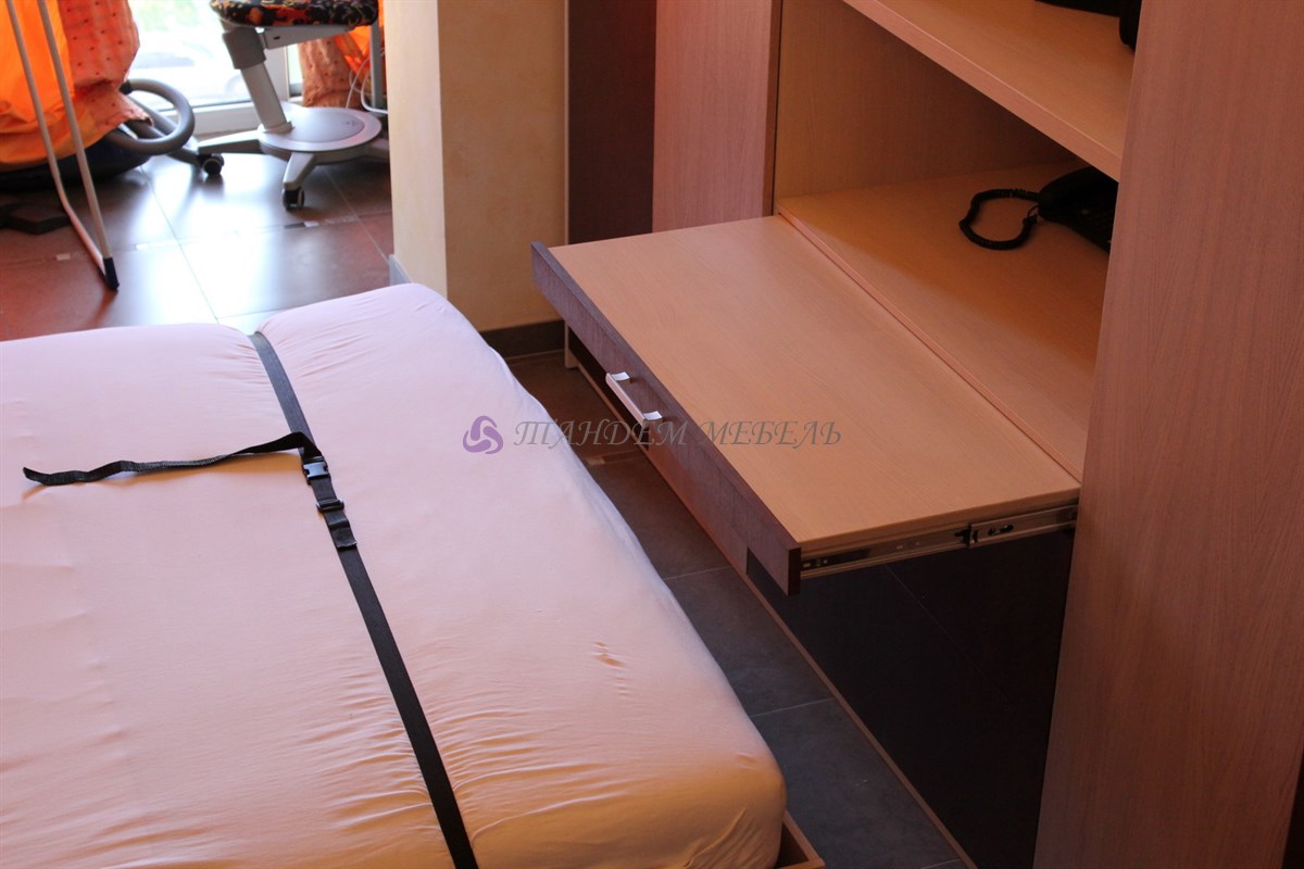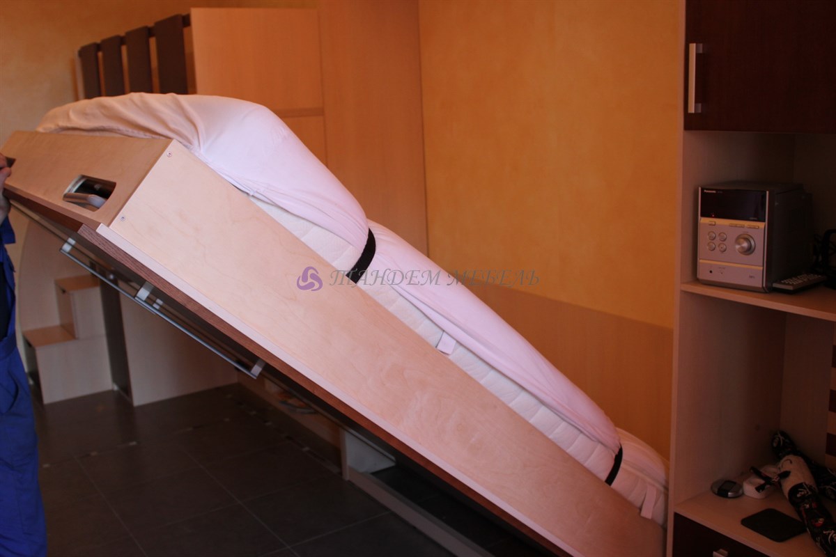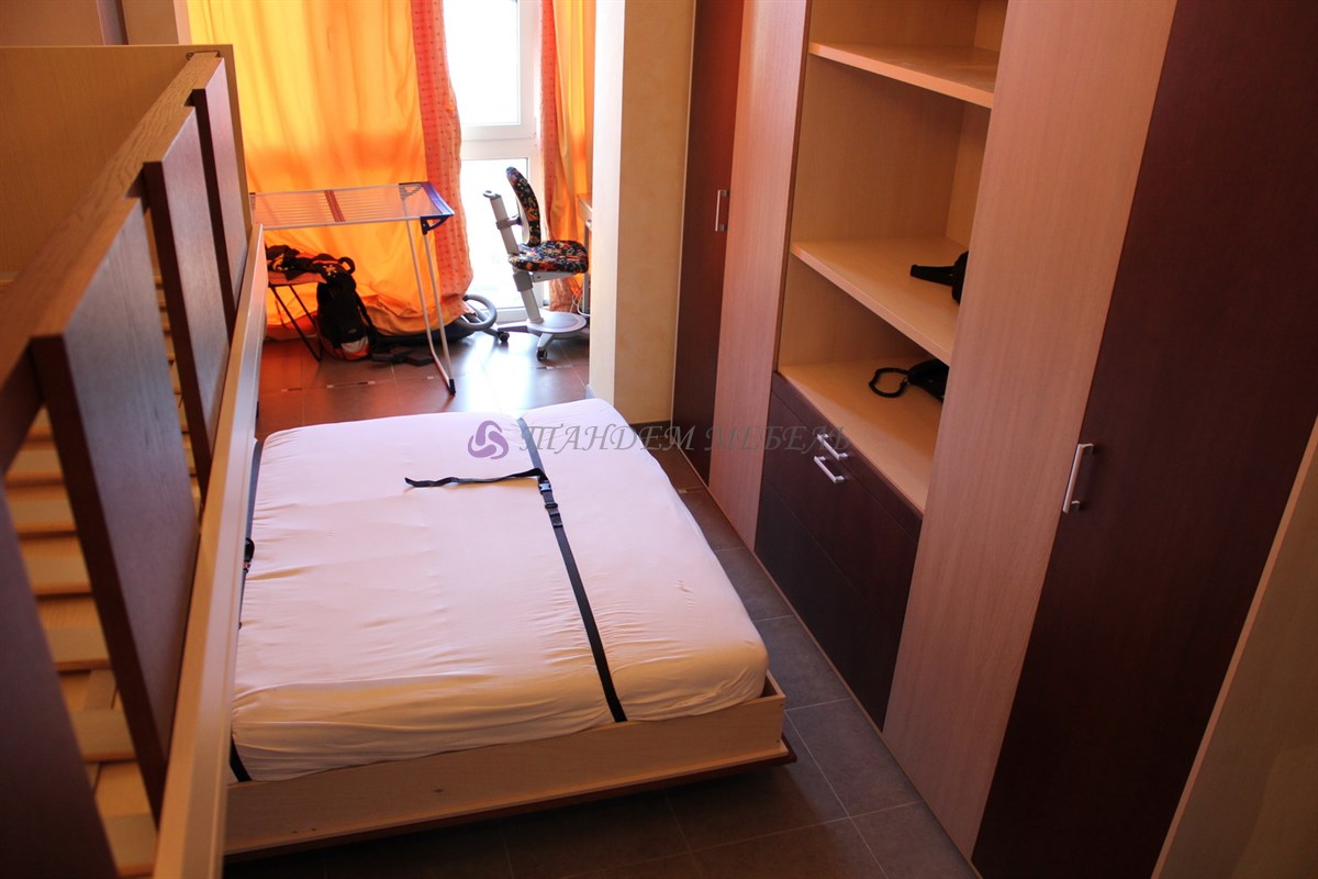 Роскошная откидная кровать, которая складывается в шкаф в вертикальном положении – это оптимальное решение для данной квартиры. Легкость и простота эксплуатации трансформирующейся мебели обусловлена отменным качеством материалов и комплектующих, надежных газовых лифтов от лучших мировых производителей и мастерством наших мастеров-сборщиков.