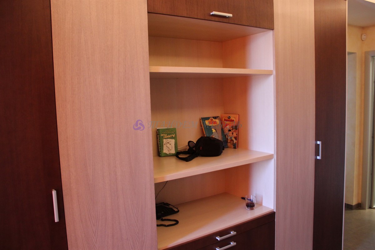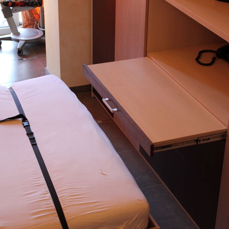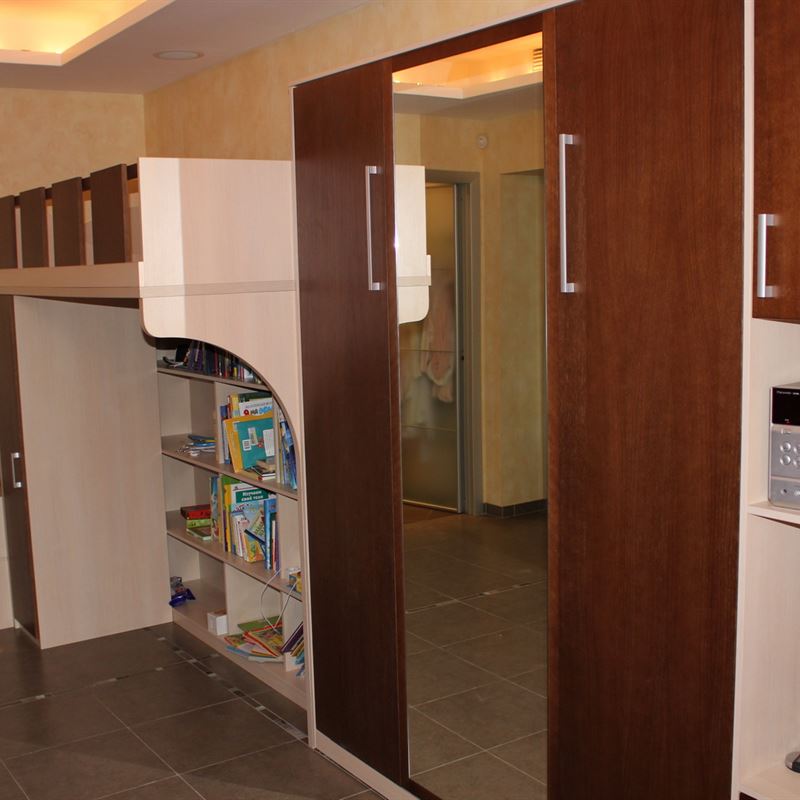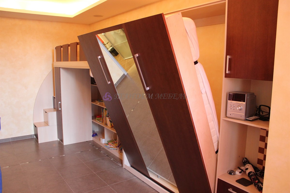 Роскошная откидная кровать, которая складывается в шкаф в вертикальном положении – это оптимальное решение для данной квартиры. Легкость и простота эксплуатации трансформирующейся мебели обусловлена отменным качеством материалов и комплектующих, надежных газовых лифтов от лучших мировых производителей и мастерством наших мастеров-сборщиков.