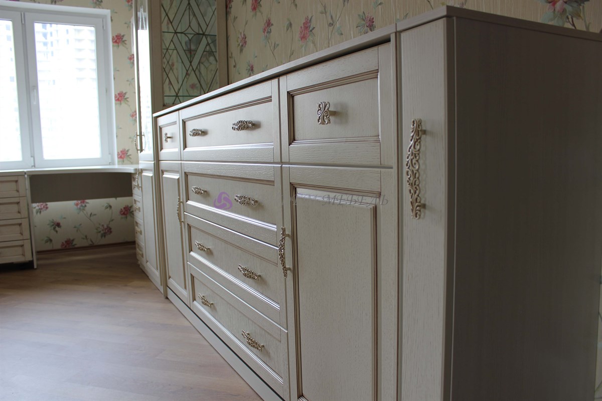 - Во-первых, светлый оттенок патинированной поверхности выглядит изысканно и аристократично – идеальный интерьер в духе классических девичьих комнат.