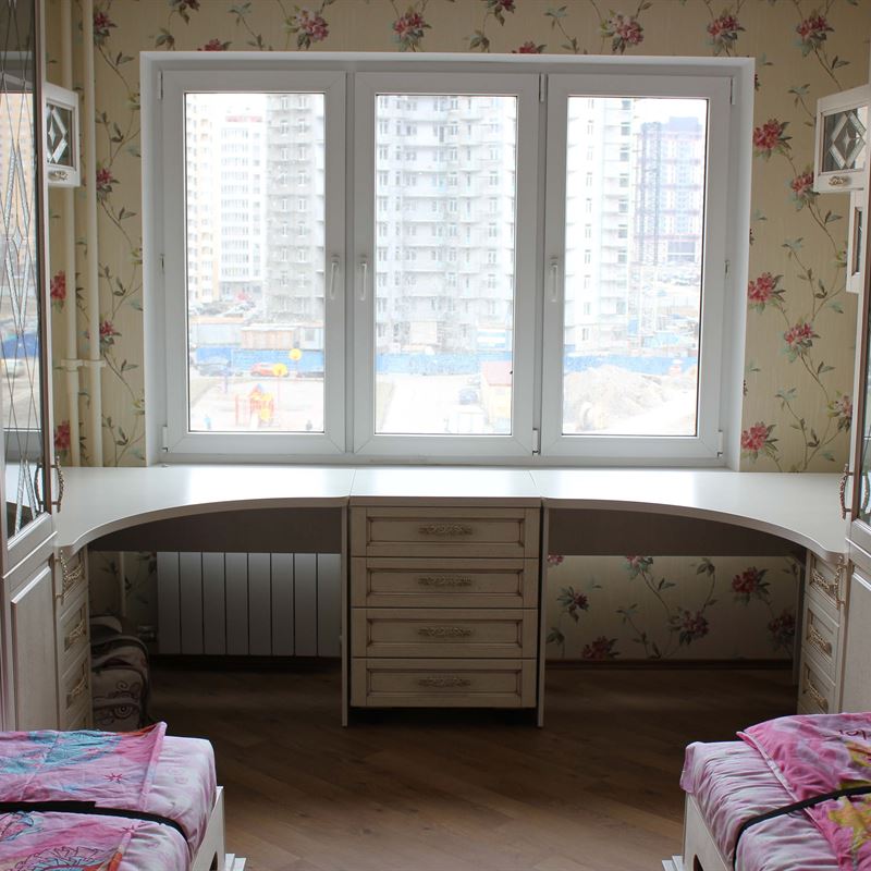 Мебель из массива на фото – это реализованный проект для комнаты в типовом многоэтажном доме, где живут две девочки. Ключевыми условиями заказа были вполне логичные требования: красота, функциональность, компактность детской мебели из массива.