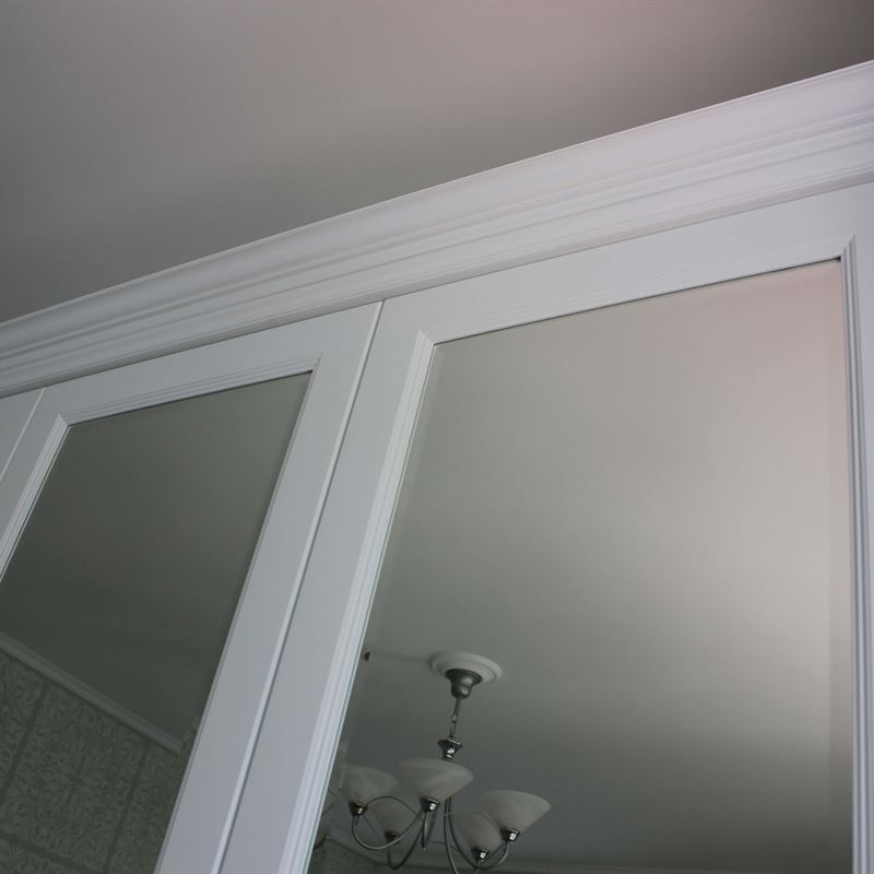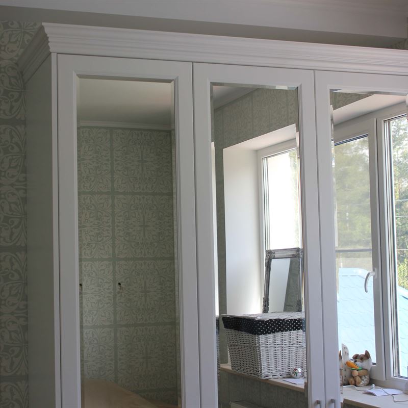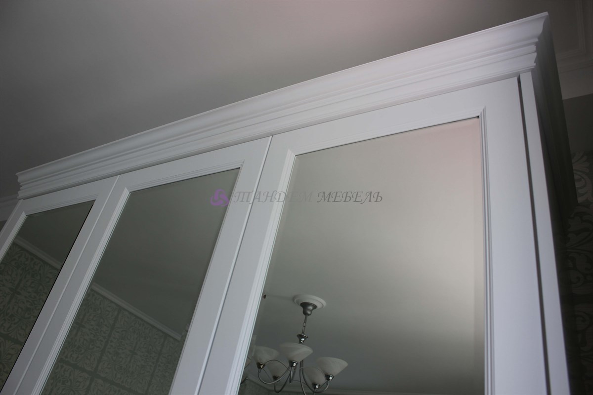 по доступной цене.Специалисты нашего мебельного производства выполнили заявку на изготовление мебели, которая находится в полной гармонии с существующей отделкой спальни. Белый цвет крашеных фасадов уже сам по себе органичен в одной из самых «спокойных» комнат в квартире, тем более цветовое оформление дверей, элементов оконной конструкции и дизайна обоев в спальни диктует именно такое колористическое решение.